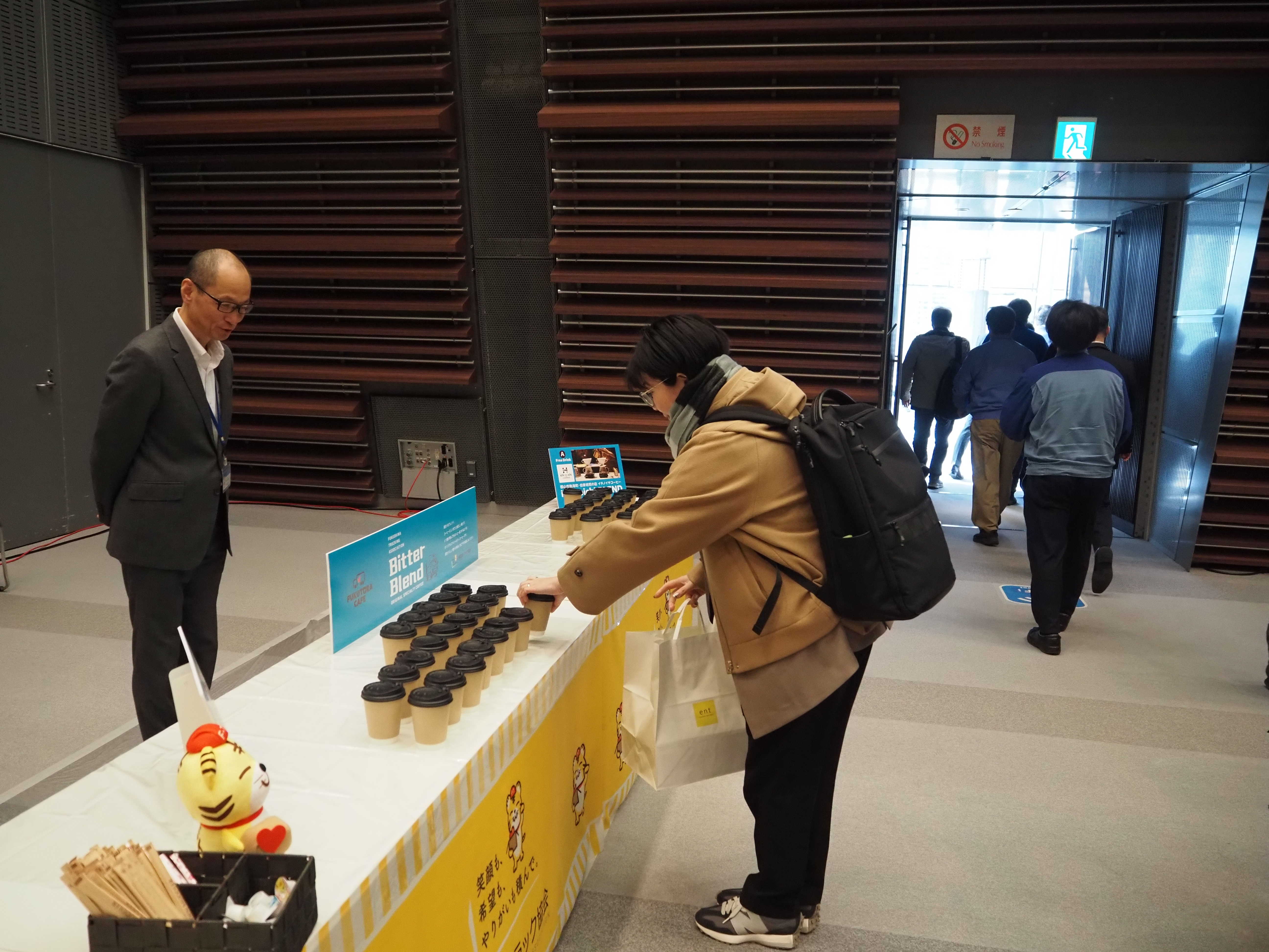 また、PR事業のキャンペーンの一環として今年度作成した福島県トラック協会オリジナルスペシャリティコーヒーを提供し、会場はコーヒーの香りに包まれました。